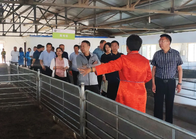 7月29日上午,自治區人大常委會(huì )委員特古斯、自治區人大常委會(huì )民族僑務(wù)外事工作委員會(huì )副主任特木勒等自治區人大調研組成員,與市人大常委會(huì )副主任、市總工會(huì )主席蔚世林,四子王旗委常委、政府常務(wù)副旗長(cháng)竇陶然等一行到達賽諾種羊科技有限公司開(kāi)展調研工作,由賽諾公司董事長(cháng)李俊龍、總經(jīng)理楊慶茹全程陪同調研。