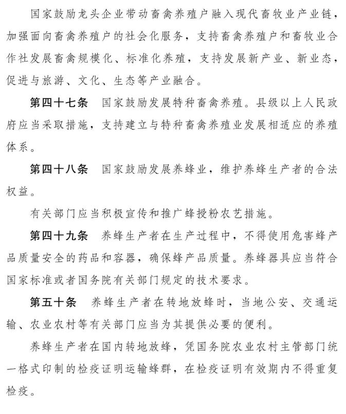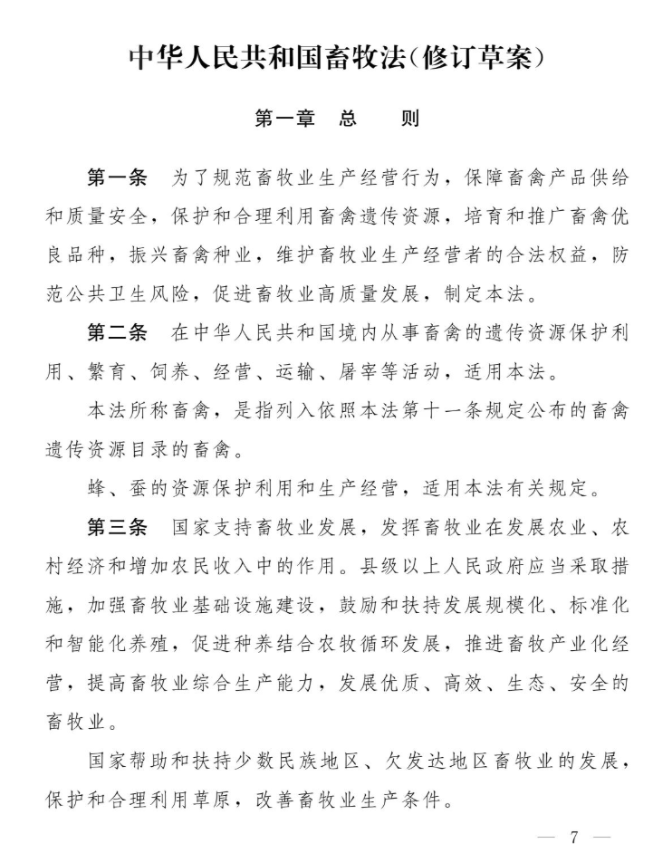 第十三屆全國人大常委會(huì )第三十一次會(huì )議對《中華人民共和國畜牧法(修訂草案)》進(jìn)行了審議?,F將《中華人民共和國畜牧法(修訂草案)》予以公布,社會(huì )公眾可以直接登錄中國人大網(wǎng)(www.npc.gov.cn)或國家法律法規數據庫(flk.npc.gov.cn)提出意見(jiàn),也可以將意見(jiàn)寄送全國人大常委會(huì )法制工作委員會(huì )(北京市西城區前門(mén)西大街1號,郵編:100805。信封上請注明畜牧法修訂草案征求意見(jiàn))。征求意見(jiàn)截止日期:2021年11月21日。